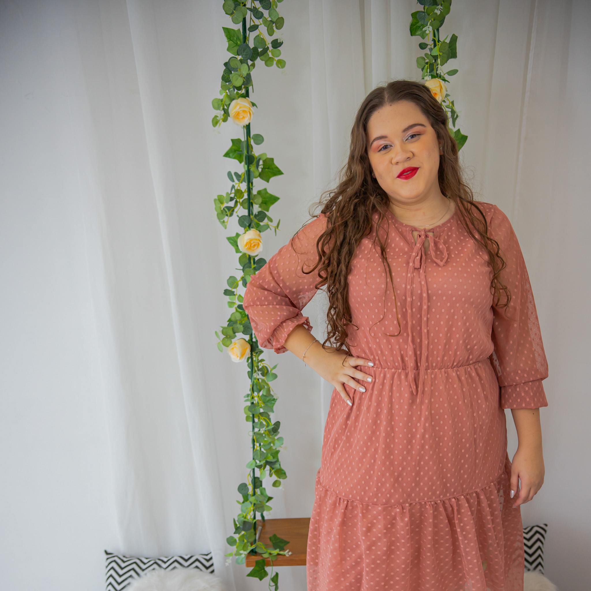 O Vestido Karmen transmite leveza e romantismo com um toque vintage. Confeccionado em tecido leve com textura de poás, ele traz amarração no decote, mangas ¾ e saia com leve babado na barra. A modelagem fluida com cintura levemente marcada oferece conforto e elegância para o dia a dia ou ocasiões delicadas.